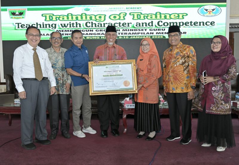 BUKITTINGGI – Gubernur Sumatera Barat, Mahyeldi Ansharullah, membuka kegiatan Training of Trainer bertajuk “Teaching with Character and Competence: Membangun Growth Mindset Guru dalam Mengembangkan Keterampilan Mengajar” di Istana Bung Hatta, Bukittinggi, pada Kamis (9/1/2025). Pelatihan ini bertujuan untuk meningkatkan kemampuan mengajar guru melalui penerapan konsep growth mindset.