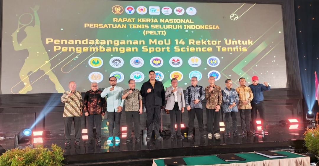 Adapun para Rektor dan Dekan yang hadir dalam penendatanganan MOU dengan PP PELTI yang di saksikan Menpora RI pada acara pembukaan Rakernas Pelti Tahun 2025, Sabtu malam (18/1) adalah Rektor UNJ, Prof.Dr.Komarudin, M.Si beserta Dekan FIK, Rektor Unimed, Prof. Dr. Baharuddin. ST. MPd beserta Dekan FIK, Rektor UPI, Prof. Dr. H. Solehuddin, M.Pd., MA. (Rektor UPI) beserta Dekan FIK.Rektor Uncen, Dr. Oscar Oswaldo O Wambrauw, SE,M.Sc.Agr beserta Dekan FIK dan Rektor UNM Dr. Karta jayadi, M.Sn beserta Dekan.