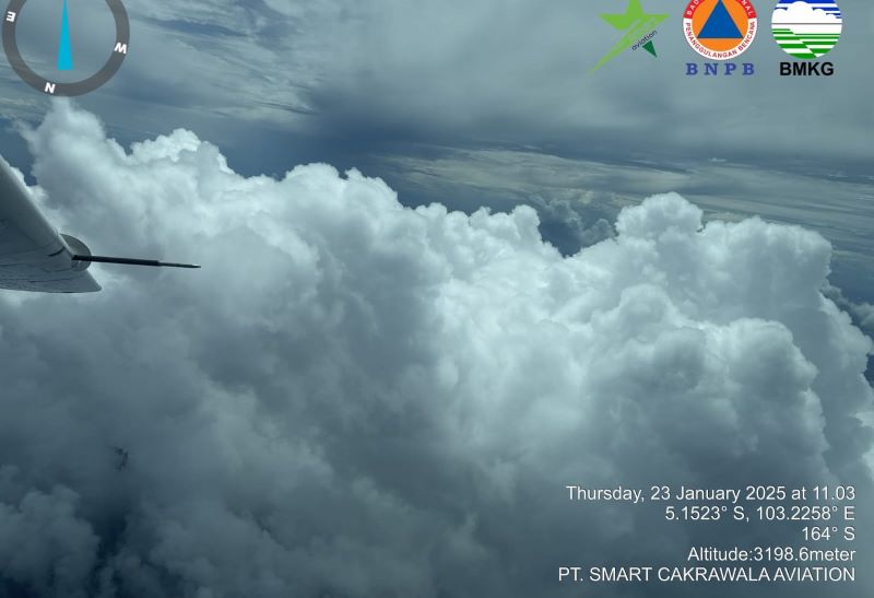 Pada Kamis (23/1), pesawat carravan bernomor lambung PK-SNN telah melaksanakan operasi modifikasi cuaca pertama selama 4 jam 18 menit.