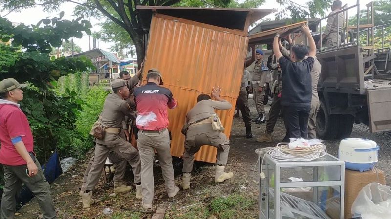 Gunakan Fasum, Lapak Pengepul Barang Bekas Ditertibkan Petugas Satpol PP Kota Padang