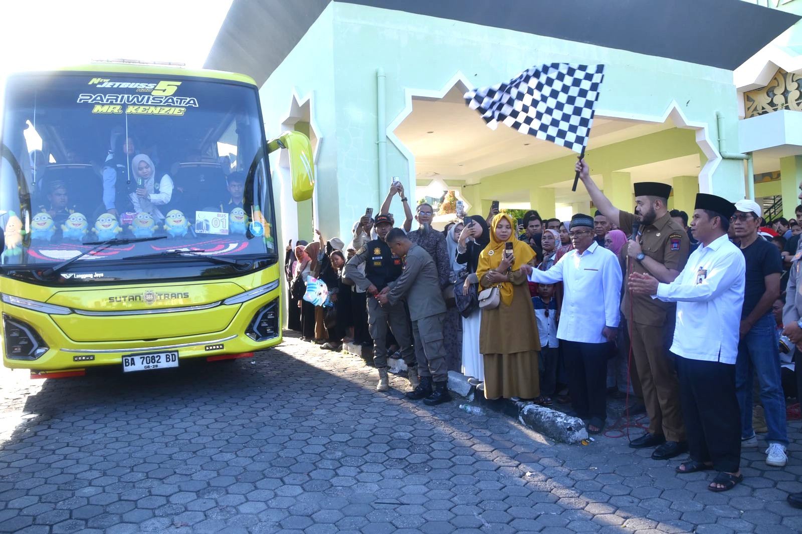PADANG – Wali Kota Padang melepas keberangkatan Calon Jamaah Haji (CJH) Kota Padang Kloter 14 di Halaman Masjid Agung Nurul Iman, Selasa sore (27/5/2025).