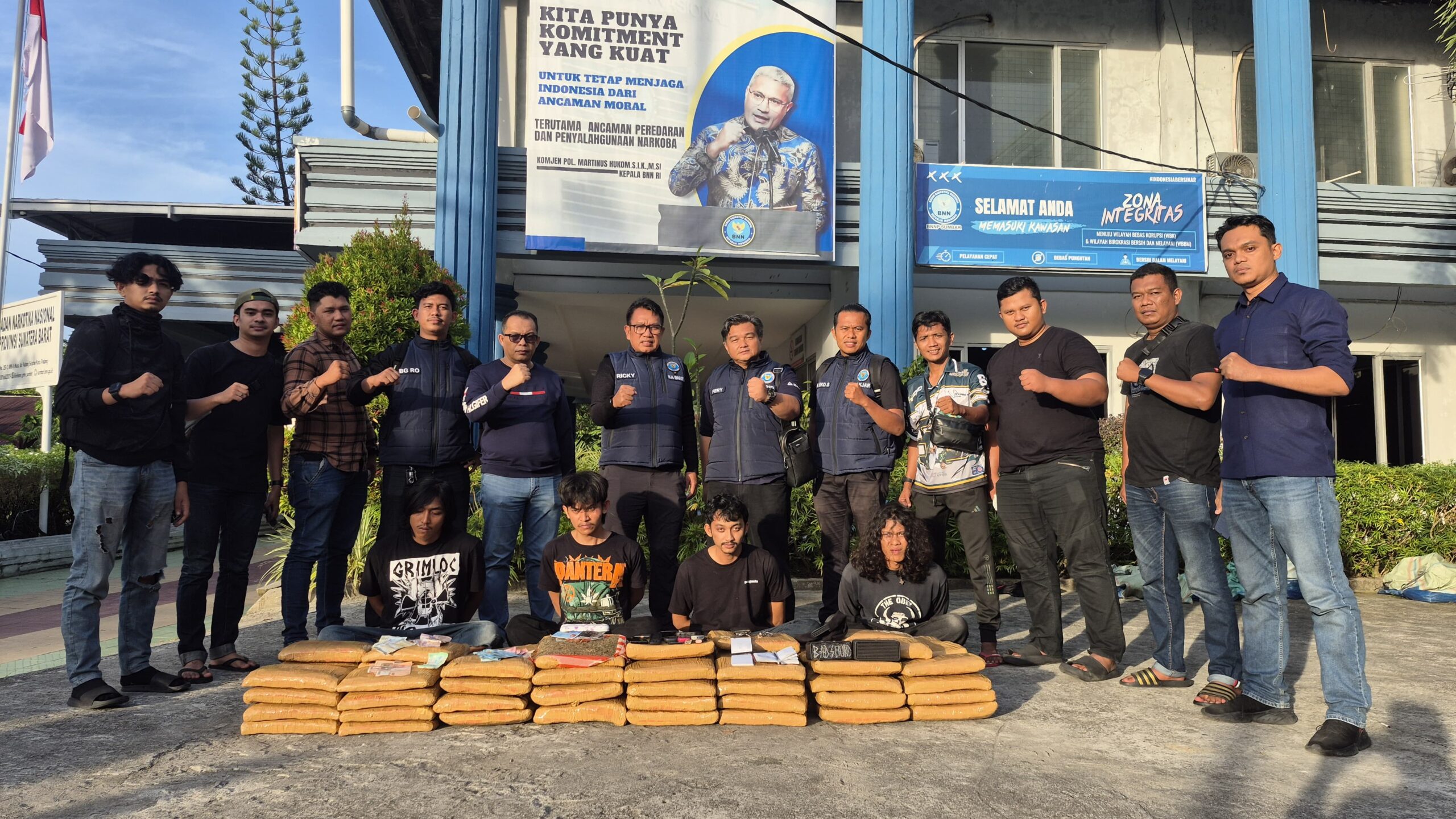 Kini, seluruh tersangka beserta barang bukti dibawa ke kantor BNNP Sumbar untuk pemeriksaan lebih lanjut. (Aul*)