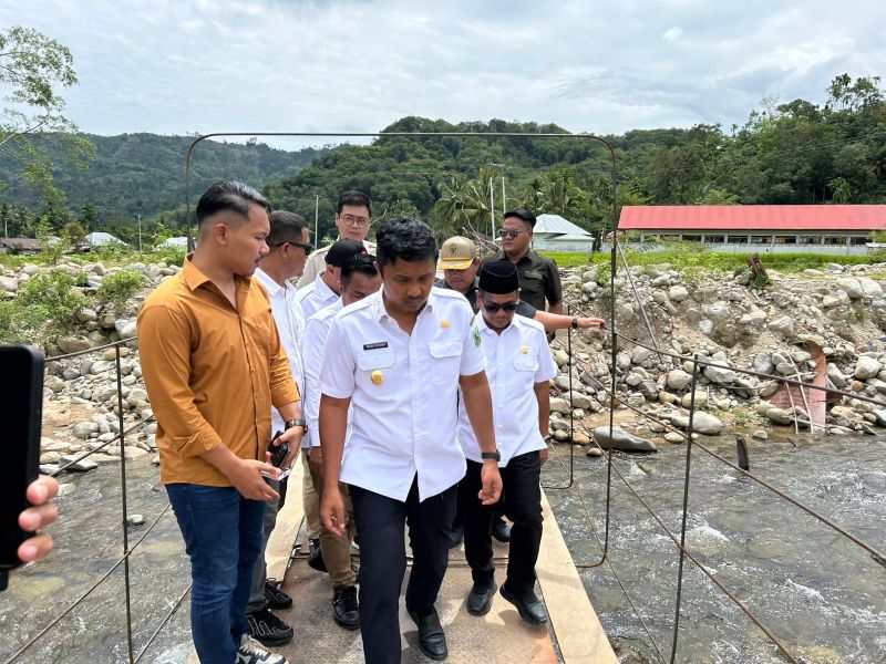 PESISIR SELATAN – Wakil Gubernur Sumbar Vasko Ruseimy meninjau kondisi jembatan sementara di Nagari Koto Rawang, Kecamatan IV Jurai, Kabupaten Pesisir Selatan, Kamis (14/8/2025). Jembatan itu sempat menelan korban jiwa dan bergoyang saat dilintasi. Kunjungan dilakukan sebagai wujud kepedulian pemerintah daerah terhadap keselamatan dan akses warga.