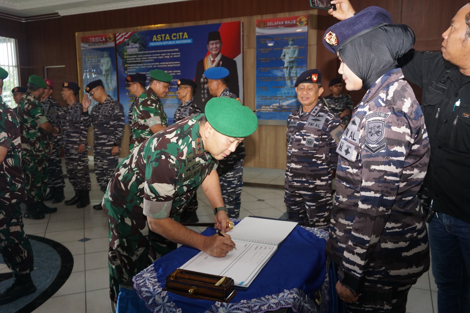 Menyambut Pangdam XX TIB, Dankodaeral II di dampingi Wadankodaeral II Kolonel Laut (P) Mulyadi SE CRMP., M.T.r.Opsla dan Pejabat Utama Kodaeral II.(drd)