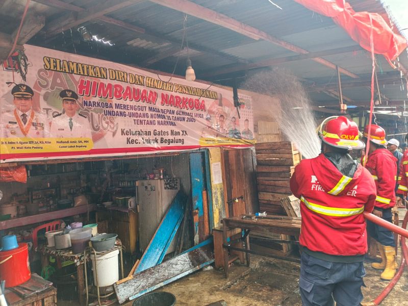 PADANG – Kebakaran melanda dua petak toko di kawasan Jalan Banyuwangi No. 6, Kelurahan Gates Nan XX, Kecamatan Lubuk Begalung, Senin (22/9/2025) sore. Api membakar warung makanan dan kios sayur milik warga setempat.