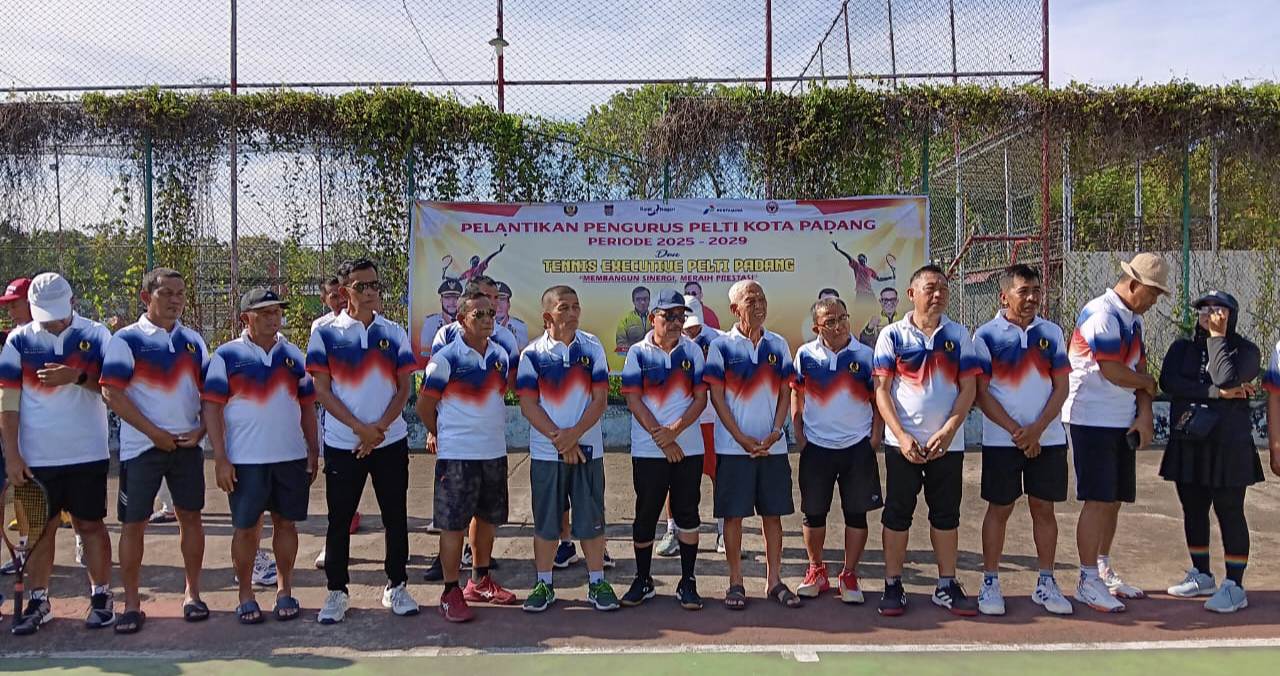 PADANG — Usai acara pelantikan dan konsolidasi, pengurus PELTI Pengkot Padang menggelar Tenis Eksekutif di Lapangan Tenis GOR Haji Agus Salim, Padang, Sabtu (11/10/2025).