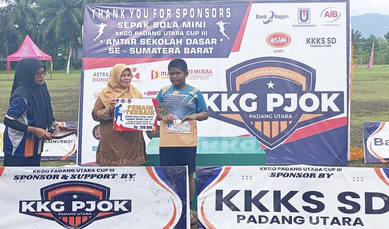 PADANG — Tim SD 24 Ujung Gurun berhasil sebagai runner-up pada laga final Sepakbola Mini KKG PJOK Padang Utara CUP III Antar Sekolah Dasar Se-Sumatera Barat, Senin (10/11/2025). Salah seorang dari pemain sekolahan itu ditetapkan sebagai pemain terbaik atas nama Alif Rahman.