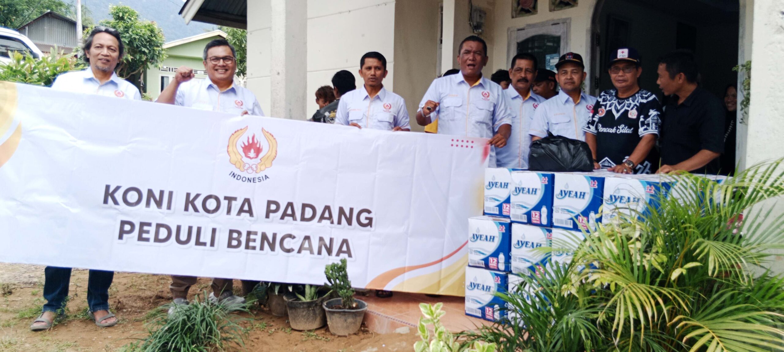 PADANG-Pengurus KONI Padang peduli korban bencana banjir bandang Guo Kuranji Kota Padang, dengan menyerahkan bantuan berupa nasi 50 bungkus, air mineral 20 dus, Minggu (30/11 /2025).