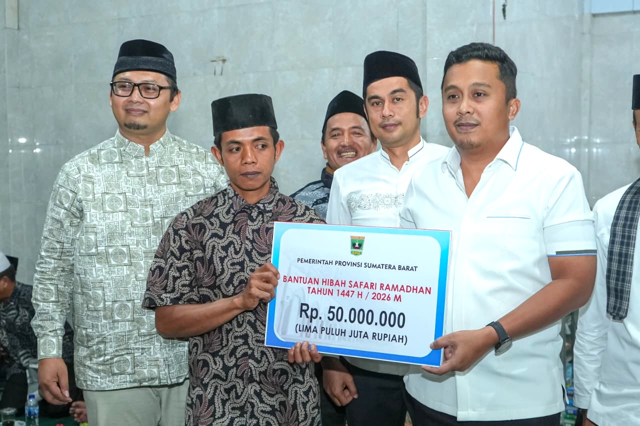 SOLSEL — Wakil Gubernur Sumatera Barat Vasko Ruseimy menyalurkan bantuan untuk dua masjid di Kecamatan Sangir, Kabupaten Solok Selatan, dalam rangka Safari Ramadan 1447 H, Jumat (27/2/2026).