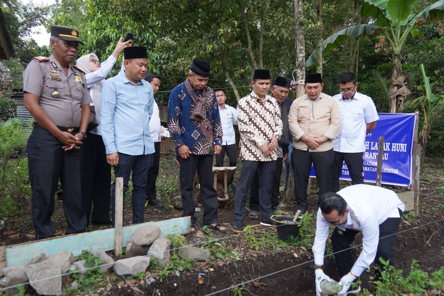 TANAHDATAR – Bupati Tanah Datar Eka Putra meletakkan batu pertama pembangunan rumah layak huni bagi warga di Jorong Guguak, Nagari Padang Magek, Kecamatan Rambatan, Rabu (1/4/2026).