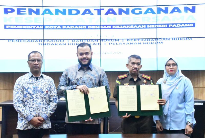 PADANG — Pemerintah Kota Padang memperkuat sinergi hukum melalui penandatanganan MoU bidang Perdata dan Tata Usaha Negara bersama Kejaksaan Negeri Padang, Kamis (16/4/2026). Kerja sama ini fokus pada pendampingan dan penanganan persoalan hukum di lingkungan pemerintah daerah.